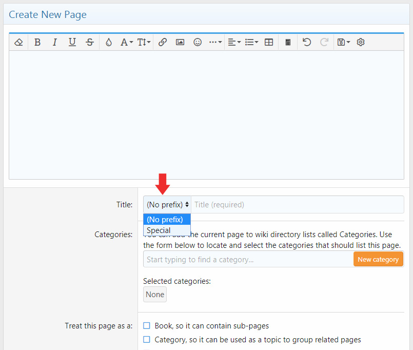Please consider switching the order of "Title" and "Categories" in VaultWiki 4.1. I think it makes more sense to position Title first, as this field is always required. In XF2.x, perhaps also add a "Required" hint, either under the Title label or as a textbox field placeholder, e.g.: