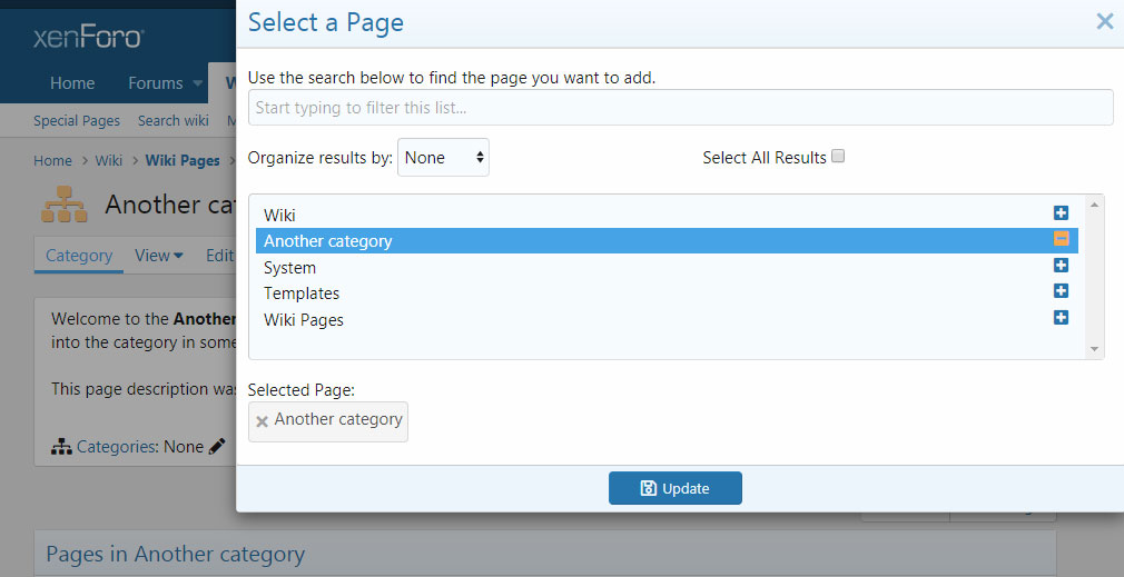 1) Add attachments to page & Add page to categories overlays currently use +/i icons for vw-search-add/vw-search-remove for the vw-search-the list. I think XF 2.x looking checkboxes would be more appropriate here (and consistent with XF). To be honest I am not a fan of using the +/- icons to represent select/deselect, particularly since the 'expand folder' image also includes a small +. Clicking the folder + performs a completely different action to the other other + icon (not a bug, but let's just remove the potential confusion ).